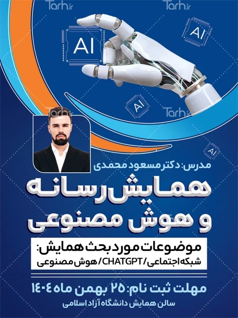 طرح پوستر همایش رسانه و هوش مصنوعی با قابلیت ویرایش المان ها کد فایل 7130569