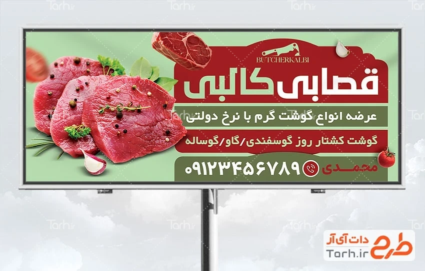 طرح لایه باز بیلبورد قصابی با عکس گوشت کد فایل 7134625