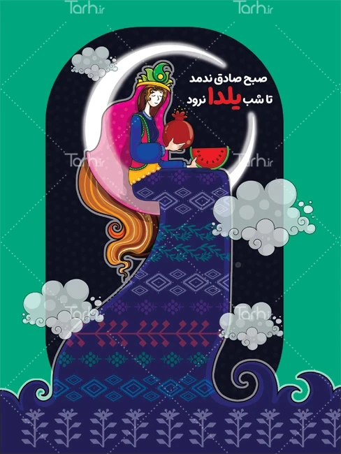 طرح پوستر لایه باز یلدایی دارای تصویرسازی زن کد فایل 7154392
