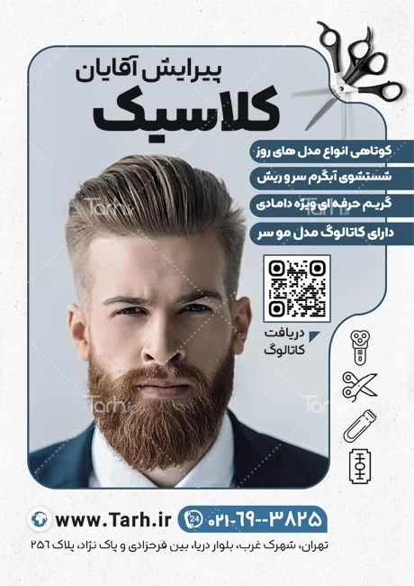 طرح پوستر تبلیغاتی آرایشگاه مردانه به صورت لایه باز کد فایل 7192834