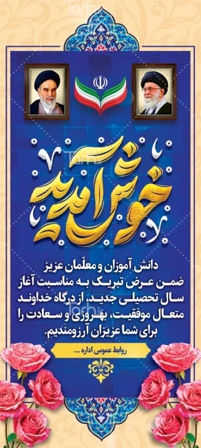 طرح استند خیرمقدم سال تحصیلی جدید با فرمت psd و قابل ویرایش در نرم افزار فتوشاپ به صورت لایه باز توسط تیم طراحان طرح دات آی آر طراحی شده است. در طرح استند بازگشایی مدارس از تصاویر و المان های با کیفیت و متناسب با استاندارد چاپ استفاده گردیده است. طرح بنر ایستاده آغاز سال تحصیلی شامل تایپوگرافی خوش آمدید، وکتور پرچم ایران و گل می باشد که المان های استفاده شده در بنر لایه باز خوش آمدگویی بازگشایی مدارس قابلیت ویرایش، جابه جایی و تغییر سایز را دارا بوده و شما می توانید متناسب با سلیقه خودتان بنر ایستاده خیر مقدم بازگشایی مدارس لایه باز را ویرایش نمایید.