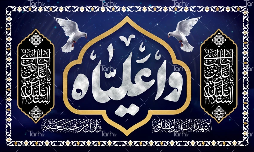 طرح بنر جایگاه شهادت حضرت علی با خوشنویسی وا علیاه کد فایل 7206431