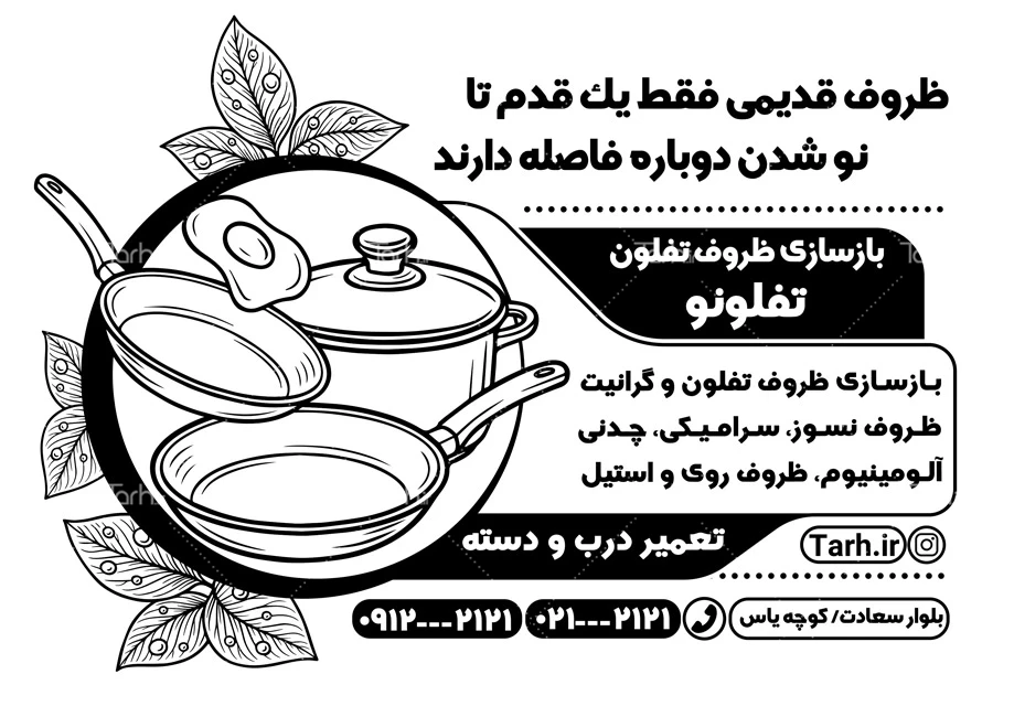 ابعاد تراکت تبلیغاتی سیاه و سفید بازسازی تفلون در جدول ویژگیهای فایل درجشده و با توجه به لایه باز بودن و کیفیت بالای طرح تراکت ریسو بازسازی ظروف تفلون، قابلیت ویرایش و تبدیل به سایز دلخواه، همچنین چاپ روی متریالهای مختلف مانند انواع کاغذ، گلاسه، کاغذ الوان و ... را دارا میباشد. همچنین میتوان طرح سیاه سفید بازسازی تفلون را در زمینه های چاپ سیلک ، نایلون، ساک دستی، پاکت دستی و کیسه نیز استفاده کرد. تراکت های سیاه سفید یا ریسو یک ابزار تبلیغاتی بسیار موثر محسوب می شوند و به دلیل هزینه کم و تأثیر بالا، در بسیاری از کسب و کارها به عنوان روشی اقتصادی و موثر برای انتقال اطلاعات به مخاطبان برای تبلیغات و رویدادهای مختلف استفاده میشوند.