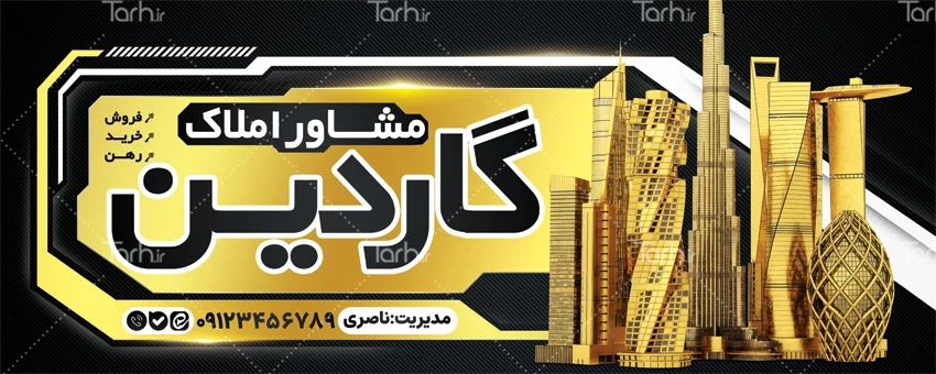 بنر خام آژانس املاک با فرمت psd و قابل ویرایش در نرمافزار فتوشاپ بهصورت لایه باز توسط تیم طراحان طرح دات آی آر طراحی شده است. در طرح لایه باز بنر املاک از تصاویر و المانهای باکیفیت و متناسب با استاندارد چاپ استفادهشده، همچنین نکات مهم در طرح لایه باز بنر مشاغل مانند رنگبندی، رعایت حاشیه، فاصلهها، سایز و نوع فونت مناسب طراحی تابلو مشاغل و ... رعایت گردیده است. طرح بنر املاک شامل عکس سازه ساختمان و رنگبندی مشکی طلایی میباشد که المانهای استفادهشده در طرح تابلو مشاوره املاک قابلیت ویرایش، جابهجایی و تغییر سایز را دارا بوده و شما میتوانید متناسب باسلیقه خودتان طرح بنر تبلیغاتی مشاور املاک را ویرایش نمایید، همچنین با تغییر تصاویر و متنها میتوانید طرح تابلو املاک را به طرح تابلوی شغل موردنظر خود تبدیل نمایید.