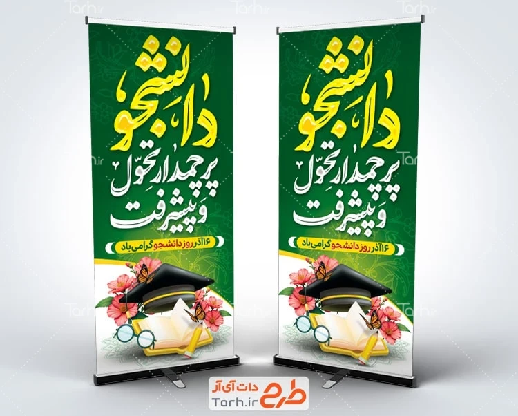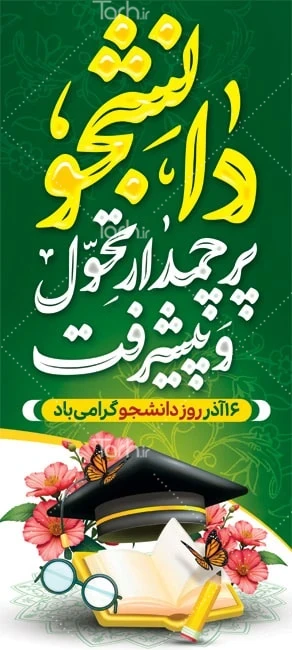 دانلود بنر استندی روز دانشجو با تایپوگرافی دانشجو پرچمدار تحول و پیشرفت کد فایل 7248593