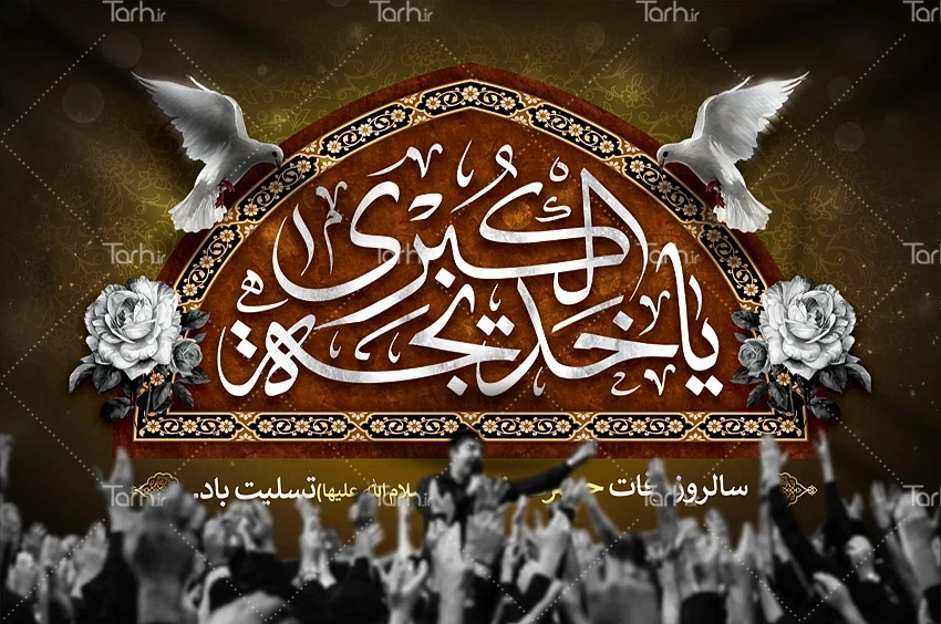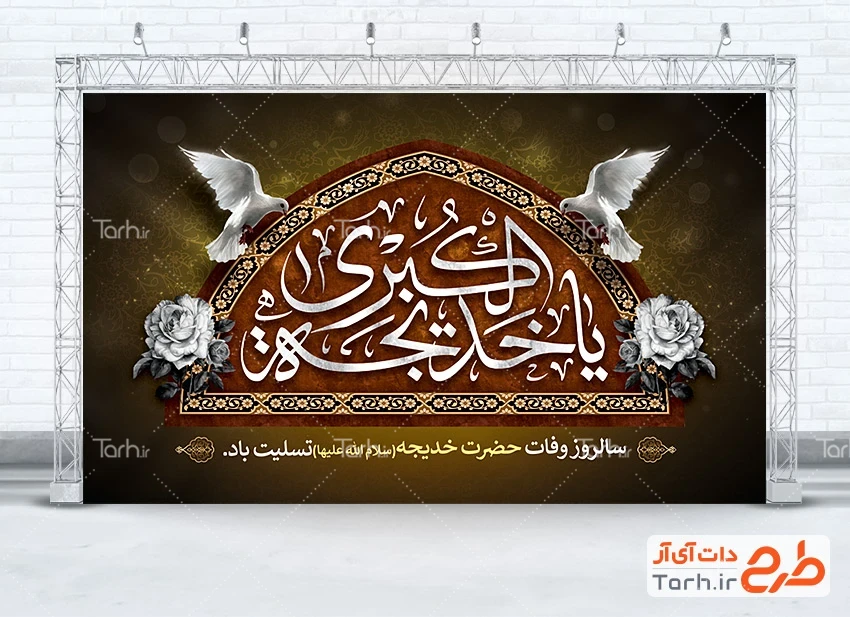 طرح بنر جایگاه عزاداری وفات حضرت خدیجه با فرمت psd و قابل ویرایش در نرم افزار فتوشاپ به صورت لایه باز توسط تیم طراحان طرح دات آی آر طراحی شده است. در بنر لایه باز رحلت حضرت خدیجه کبری از تصاویر و المان های با کیفیت و متناسب با استاندارد چاپ استفاده گردیده است. بنر پشت منبری وفات حضرت خدیجه شامل خوشنویسی یا خدیجه الکبری و وکتور کبوتر می باشد که المان های استفاده شده در بنر لایه باز وفات حضرت خدیجه کبری قابلیت ویرایش، جابه جایی و تغییر سایز را دارا بوده و شما می توانید متناسب با سلیقه خودتان طرح دکور رحلت حضرت خدیجه کبری را ویرایش نمایید.