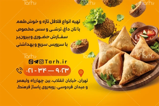 فایل لایه باز کارت ویزیت فلافلی با عکس ساندویچ فلافل کد فایل 7285961