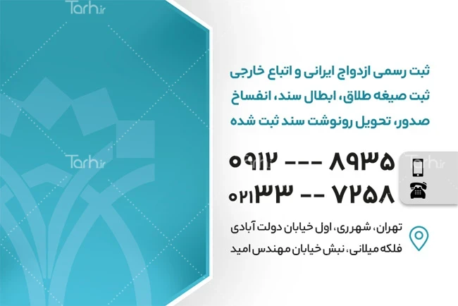 - دسته بندی : کارت ویزیت دفتر ثبت ازدواج