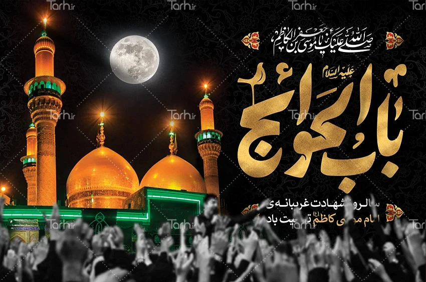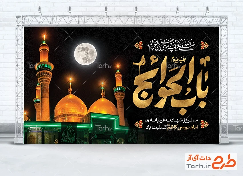 بنر پشت منبر شهادت امام موسی کاظم شامل تایپوگرافی باب الحوائج کد فایل 7296083