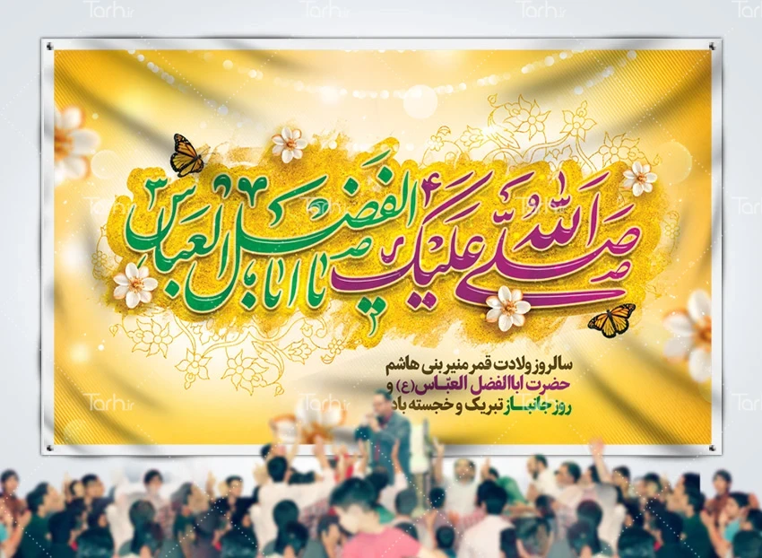دانلود بنر پشت منبری ولادت حضرت عباس و روز جانباز با فرمت psd و قابل ویرایش در نرم افزار فتوشاپ به صورت لایه باز توسط تیم طراحان طرح دات آی آر طراحی شده است. در طرح لایه باز ولادت حضرت عباس از تصاویر و المان های با کیفیت و متناسب با استاندارد چاپ استفاده گردیده است. طرح بنر پشت منبری روز جانباز شامل خوشنویسی صلی الله علیک یا اباالفضل العباس، وکتور گل و پروانه میباشد که المان های استفاده شده در بنر لایه باز ولادت حضرت عباس قابلیت ویرایش، جابه جایی و تغییر سایز را دارا بوده و شما می توانید متناسب با سلیقه خودتان طرح بنر ولادت حضرت ابوالفضل العباس را ویرایش نمایید.