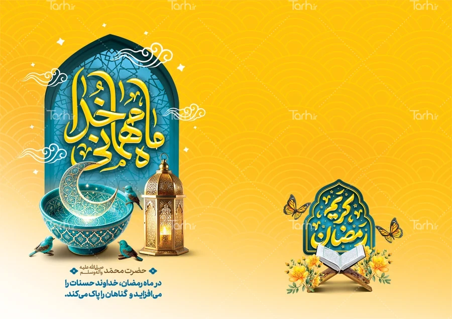 طرح آماده دعوتنامه افطاری رمضان با تایپوگرافی ماه مهمانی خدا کد فایل 7324906