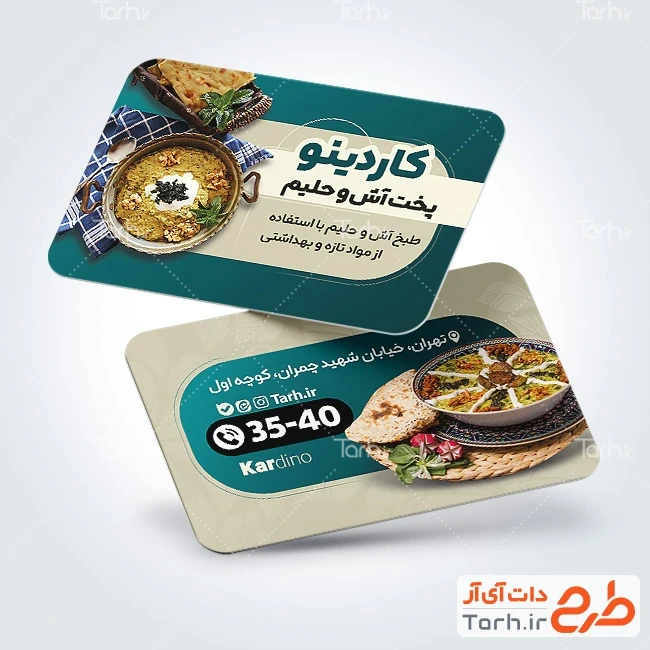 طرح آماده کارت ویزیت آش فروشی با قابلیت ویرایش المان ها کد فایل 7328945