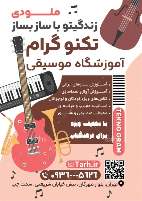 طرح تراکت آموزشکده موسیقی با فرمت psd و قابل ویرایش در نرمافزار فتوشاپ بهصورت لایه باز توسط تیم طراحان طرح دات آی آر طراحی شده است. در نمونه تراکت کلاس موسیقی از تصاویر و المانهای باکیفیت و متناسب با استاندارد چاپ استفادهشده، همچنین نکات مهم در طرح تراکت کلاس موسیقی مانند رنگبندی، رعایت حاشیه، فاصلهها، فضای کافی برای درج متن، سایز و نوع فونت مناسب طراحی تراکت و ... رعایت گردیده است. طرح لایه باز تراکت آموزشگاه موسیقی شامل وکتور گیتار و ارگ میباشد که المانهای استفادهشده در طرح تراکت آموزشگاه موسیقی قابلیت ویرایش، جابهجایی و تغییر سایز را دارا بوده و شما میتوانید متناسب باسلیقه خودتان تراکت لایه باز کلاس موسیقی را ویرایش نمایید، همچنین با تغییر تصاویر و متنها میتوانید طرح تراکت کلاس نوازندگی را به طرح تراکت کسب و کار مد نظر خود شخصی سازی نمایید.