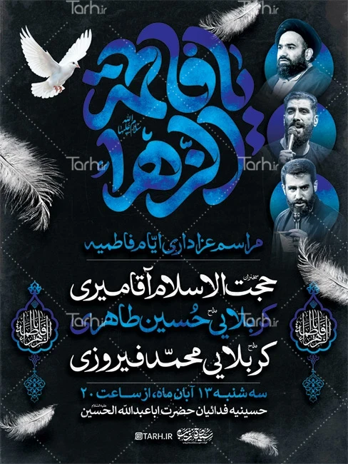 دانلود بنر اطلاع رسانی دهه فاطمیه با فرمت psd و قابل ویرایش در نرم افزار فتوشاپ به صورت لایه باز توسط تیم طراحان طرح دات آی آر طراحی شده است. در طرح لایه باز اطلاعیه فاطمیه از تصاویر و المان های با کیفیت و متناسب با استاندارد چاپ استفاده گردیده است. طرح اطلاعیه خام ایام فاطمیه شامل تایپوگرافی یا فاطمه الزهرا و دارای زمان و مکان مراسم روضه و عزاداری می باشد که المان های استفاده شده در طرح لایه باز پوستر شهادت حضرت فاطمه قابلیت ویرایش، جابه جایی و تغییر سایز را دارا بوده و شما می توانید متناسب با سلیقه خودتان طرح اطلاعیه شهادت حضرت فاطمه را ویرایش نمایید.