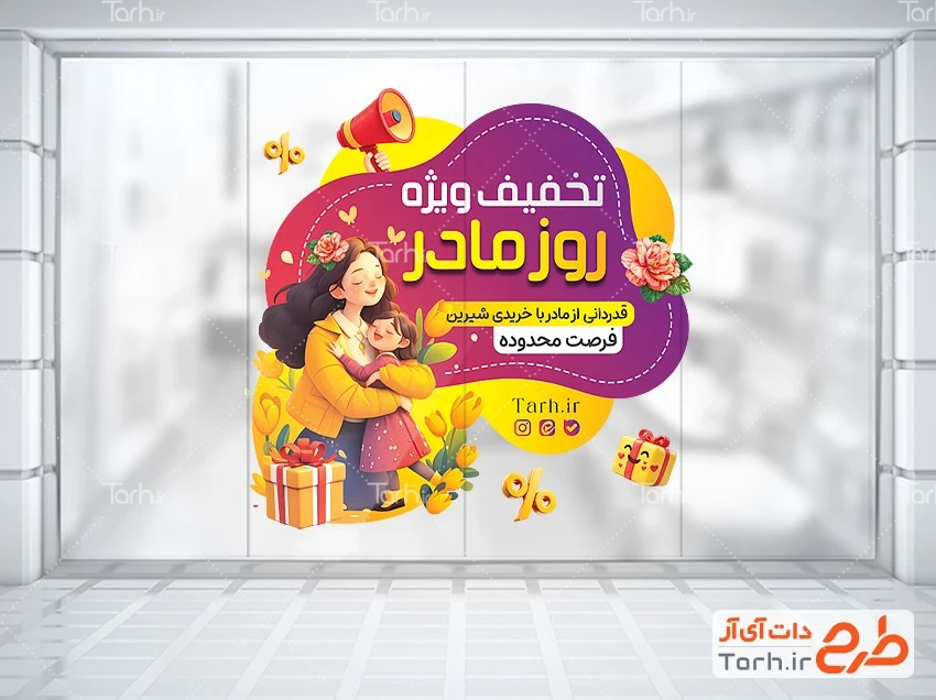ابعاد قابل چاپ طرح لایه باز استیکر فروش ویژه روز مادر و کاربرد آن