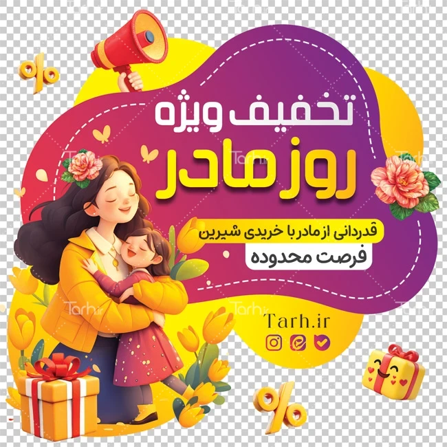 نمونه استیکر فروش ویژه روز مادر شامل تصویرسازی مادر و فرزند کد فایل 7429085
