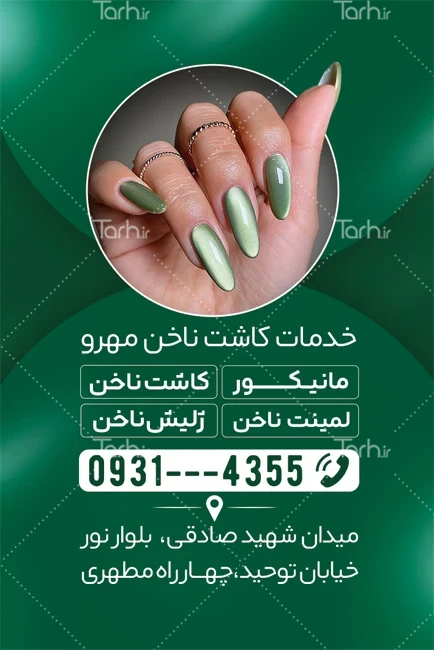 فایل کارت ویزیت سالن کاشت ناخن با قابلیت ویرایش المان ها کد فایل 7432905