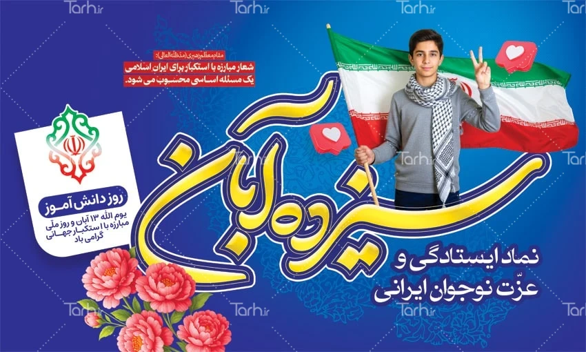 طرح لایه باز بنر 13 آبان با عکس دانش آموز کد فایل 7435690