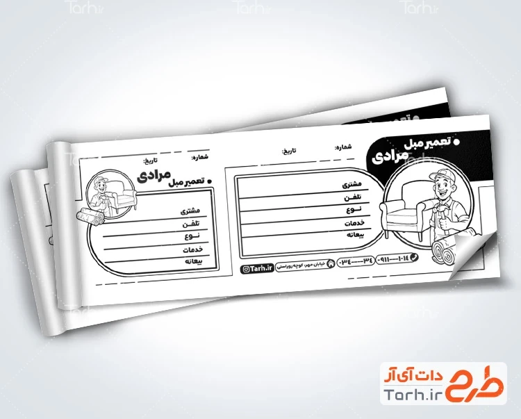 ابعاد قابل چاپ طرح لایه باز قبض رسید تعمیرات مبل و کاربرد آن