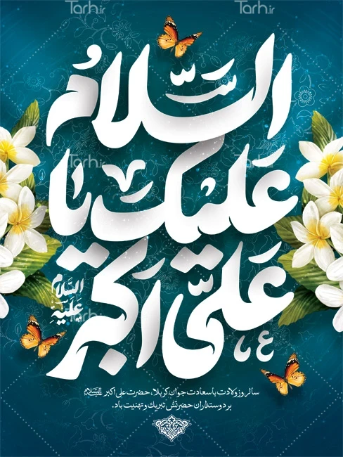 طرح پوستر تبریک ولادت حضرت علی اکبر با خوشنویسی السلام علیک یا علی اکبر کد فایل 7465018