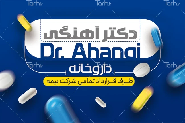 نمونه کارت ویزیت داروخانه شبانه روزی با تم آبی کد فایل 7483915