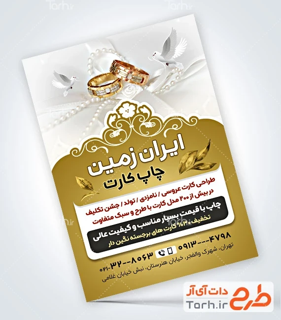 طرح psd تراکت کارت دعوت عروسی با عکس حلقه کد فایل 7491035