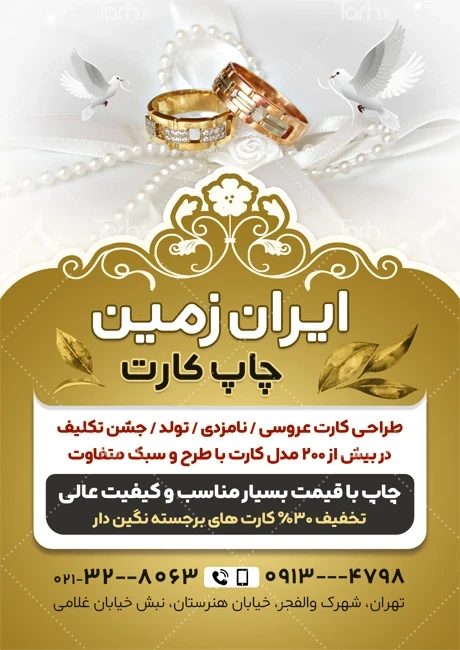 ابعاد طرح تراکت تبلیغاتی کارت عروسی در جدول ویژگیهای فایل درجشده و با توجه به لایه باز بودن و کیفیت بالای طرح کارت عروسی، قابلیت ویرایش و تبدیل به سایز دلخواه، همچنین چاپ روی متریالهای مختلف مانند بنر، کاغذ، گلاسه و ... را دارا میباشد. برای مثال تراکت خام دعوت نامه عروسی در ابعاد A4 رزولوشن 300 dpi قابلیت چاپ بنر و لارج فرمت در ابعاد بزرگتر مانند 3 در 4 متر و بدون افت کیفیت را دارا میباشد. تراکت ها به عنوان یک ابزار تبلیغاتی بسیار موثر محسوب می شوند و به دلیل هزینه کم و تأثیر بالا، در بسیاری از کسب و کارها به عنوان روشی برای تبلیغات و رویدادهای مختلف مورد استفاده قرار می گیرند.