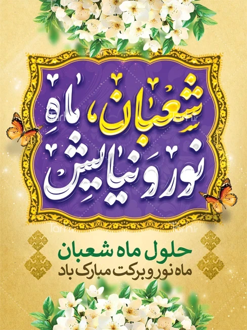 پوستر خام حلول ماه شعبان با تایپوگرافی شعبان ماه نور و نیایش کد فایل 7501862