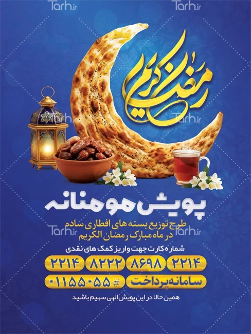 طرح پوستر کمک مومنانه رمضان با فرمت psd و قابل ویرایش در نرم افزار فتوشاپ به صورت لایه باز توسط تیم طراحان طرح دات آی آر طراحی شده است. در بنر ماه مبارک رمضان از تصاویر و المان های با کیفیت و متناسب با استاندارد چاپ استفاده گردیده است. طرح بنر کمک مومنانه در ماه رمضان شامل تایپوگرافی رمضان کریم، عکس آش رشته و نان میباشد که المان های استفاده شده در پوستر کمک به خیریه در ماه رمضان قابلیت ویرایش، جابه جایی و تغییر سایز را دارا بوده و شما می توانید متناسب با سلیقه خودتان طرح بنر پویش نذر ماه رمضان را ویرایش نمایید.