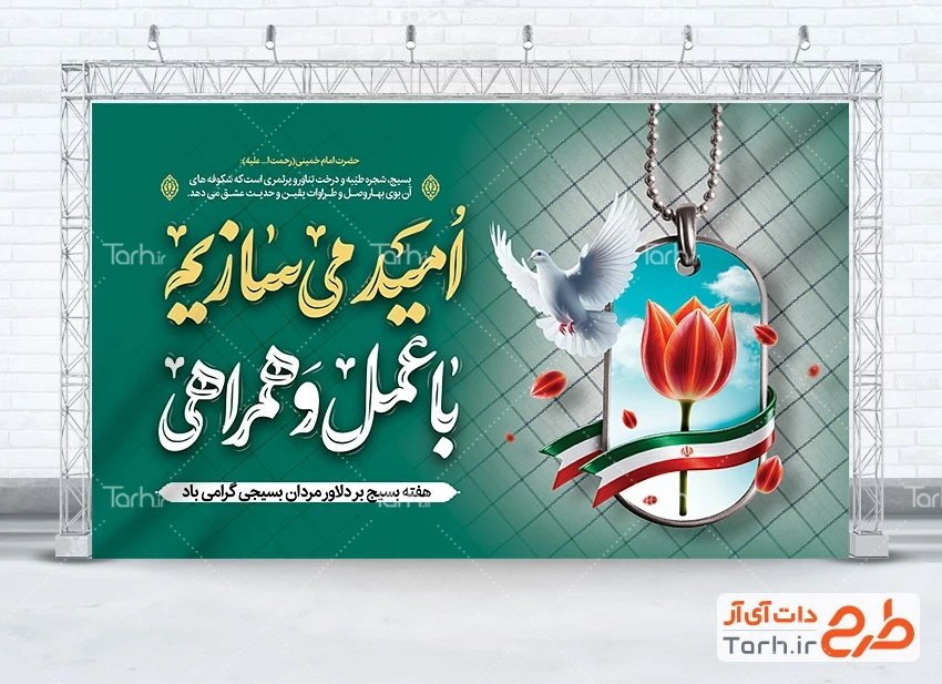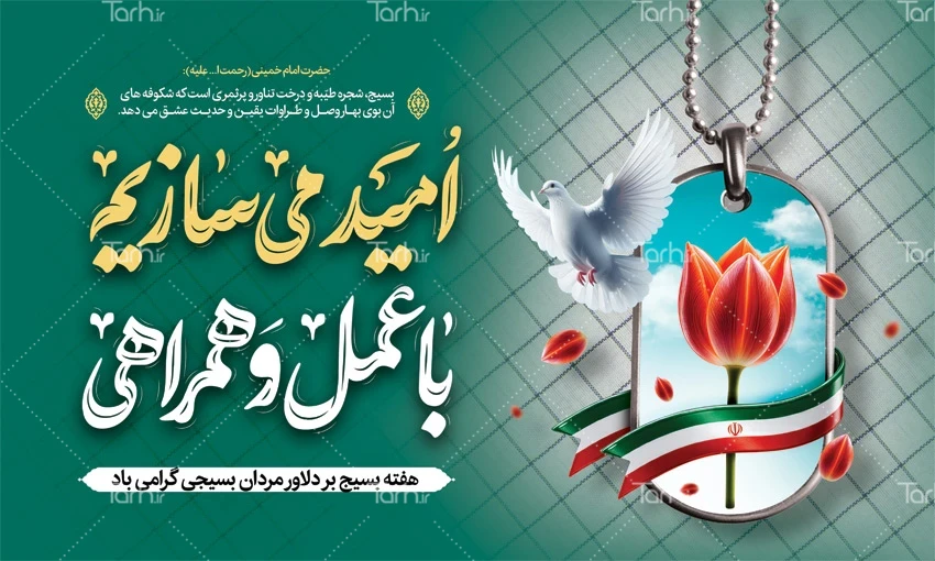 دانلود بنر آغاز هفته بسیج با تایپوگرافی امید می سازیم با عمل و همراهی کد فایل 7509618