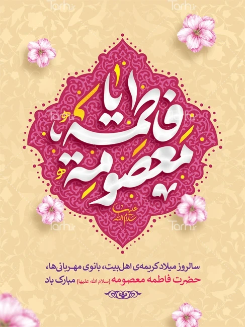 طرح آماده پوستر میلاد حضرت معصومه با تایپوگرافی یا فاطمه معصومه کد فایل 7538214