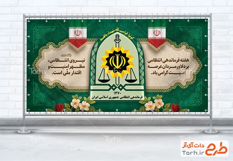 طرح لایه باز بنر هفته نیرو انتظامی با فرمت psd و قابل ویرایش در نرم افزار فتوشاپ به صورت لایه باز توسط تیم طراحان طرح دات آی آر طراحی شده است. در طرح لایه باز هفته نیروی انتظامی و روز پلیس از تصاویر و المان های با کیفیت و متناسب با استاندارد چاپ استفاده گردیده است. طرح بنر هفته نیروی انتظامی شامل آرم نیروی انتظامی، وکتور پرچم ایران و طرح اسلیمی می باشد که المان های استفاده شده در بنر لایه باز روز نیروی انتظامی قابلیت ویرایش، جابه جایی و تغییر سایز را دارا بوده و شما می توانید متناسب با سلیقه خودتان طرح هفته نیروی انتظامی را ویرایش نمایید.