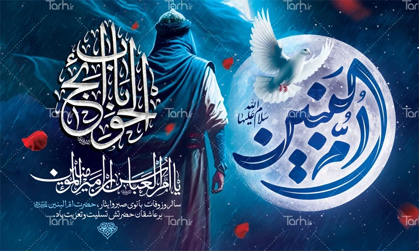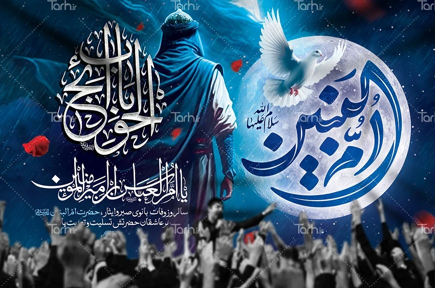 طرح لایه باز بنر پشت سن وفات ام البنین با تایپوگرافی ام البنین کد فایل 7584913