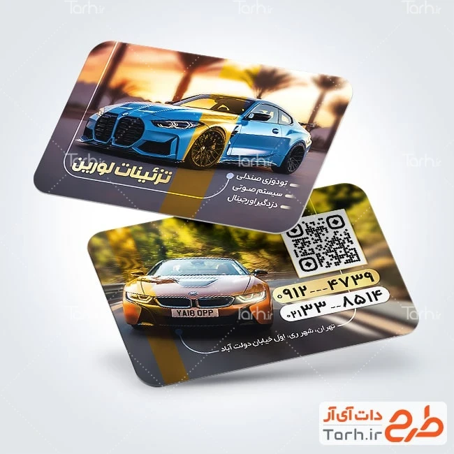 طرح آماده کارت ویزیت تزئینات اتومبیل با فرمت psd و قابل ویرایش در نرم‌افزار فتوشاپ به‌صورت لایه باز و پشت و رو (دو رو) توسط تیم طراحان طرح دات آی آر طراحی شده است. طرح کارت ویزیت لوکس اتومبیل از تصاویر و المان‌های باکیفیت و متناسب با استاندارد چاپ استفاده‌شده، همچنین نکات مهم در طرح کارت ویزیت مانند رنگ‌بندی، رعایت حاشیه، فاصله‌ها، فضای کافی برای درج متن، سایز و نوع فونت مناسب طراحی کارت ویزیت و ... رعایت گردیده است. نمونه کارت ویزیت لوکس اتومبیل شامل عکس ماشین می‌باشد که المان‌های استفاده‌شده در طرح کارت ویزیت تزئینات ماشین قابلیت ویرایش، جابه‌جایی و تغییر سایز را دارا بوده و شما می‌توانید متناسب باسلیقه خودتان کارت ویزیت لایه باز ضبط و باند اتومبیل را ویرایش نمایید، همچنین با تغییر تصاویر و متن‌ها می‌توانید طرح کارت ویزیت کفپوش خودرو را به طرح کارت ویزیت کسب و کار مد نظر خود شخصی سازی نمایید.