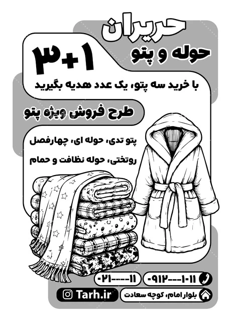 - دسته بندی : تراکت سیاه سفید پتو فروشی، حوله و روفرشی