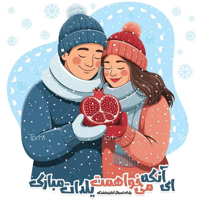 نمونه تیشرت یلدایی با تصویرسازی دختر و پسر کد فایل 7632895