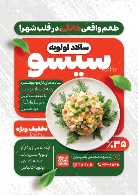 طرح آماده تراکت سالاد الویه با قابلیت ویرایش المان ها کد فایل 7643821