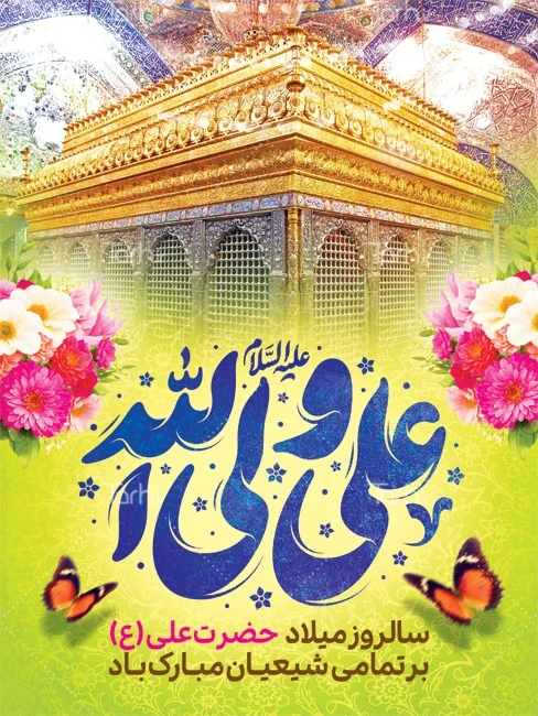 طرح قابل ویرایش پوستر ولادت حضرت علی با فرمت psd و قابل ویرایش در نرم افزار فتوشاپ به صورت لایه باز توسط تیم طراحان طرح دات آی آر طراحی شده است. در طرح لایه باز ولادت حضرت علی از تصاویر و المان های با کیفیت و متناسب با استاندارد چاپ استفاده گردیده است. پوستر ولادت حضرت امیر شامل عکس حرم حضرت علی، تایپوگرافی علی ولی الله، وکتور گل و پروانه میباشد که المان های استفاده شده در بنر میلاد حضرت امیرالمومنین قابلیت ویرایش، جابه جایی و تغییر سایز را دارا بوده و شما می توانید متناسب با سلیقه خودتان طرح بنر ولادت امام علی را ویرایش نمایید.
