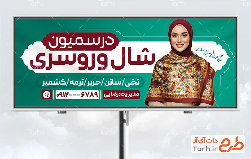 طرح بیلبورد تبلیغاتی شال و روسری با قابلیت ویرایش المان ها کد فایل 7813964
