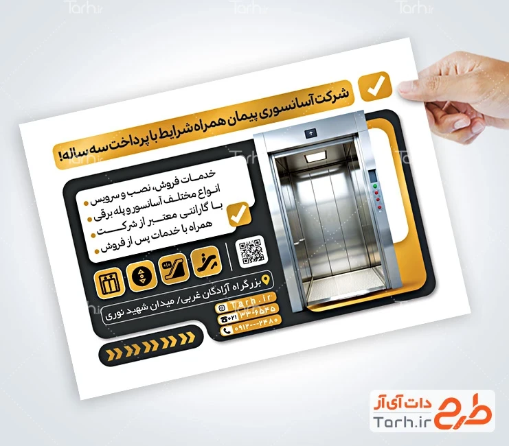طرح خام تراکت آسانسور و پله برقی دارای عکس اسانسور کد فایل 7819250