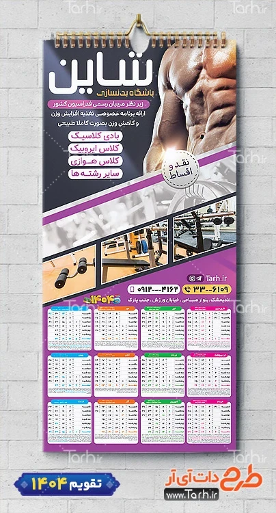 دانلود تقویم لایه باز باشگاه بدنسازی با قابلیت ویرایش المان ها کد فایل 7831649