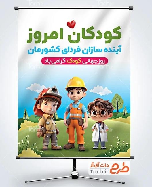 طرح بنر آماده روز جهانی کودک با فرمت psd و قابل ویرایش در نرم افزار فتوشاپ به صورت لایه باز توسط تیم طراحان طرح دات آی آر طراحی شده است. در دانلود طرح بنر روز کودک از تصاویر و المانهای با کیفیت و متناسب با استاندارد چاپ استفاده گردیده است. طرح لایه باز تبریک روز کودک شامل متن کودکان امروز آینده سازان فردای کشورمان و تصویرسازی کودکان می باشد. المانهای استفاده شده در طرح بنر روز ملی کودکان قابلیت ویرایش، جابه جایی و تغییر سایز را دارا بوده و شما می توانید متناسب با سلیقه خودتان طرح بنر تبریک روز جهانی کودک را ویرایش نمایید.