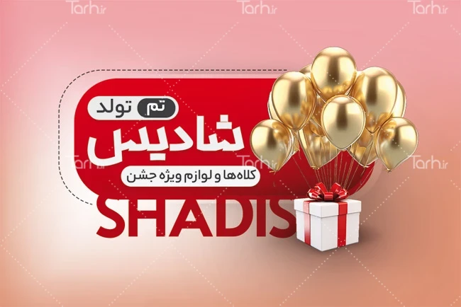 طرح کارت ویزیت تبلیغاتی لوازم تولد با تصویرسازی جعبه هدیه و بادکنک کد فایل 7854612