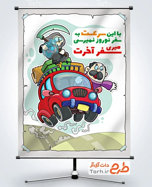 طرح بنر کنترل سرعت در سفرهای نوروزی شامل تصویرسازی اتومبیل و راننده کد فایل 7914253