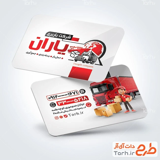 دانلود طرح کارت ویزیت شرکت باربری با فرمت psd و قابل ویرایش در نرمافزار فتوشاپ بهصورت لایه باز و پشت و رو (دو رو) توسط تیم طراحان طرح دات آی آر طراحی شده است. طرح کارت ویزیت باربری از تصاویر و المانهای باکیفیت و متناسب با استاندارد چاپ استفادهشده، همچنین نکات مهم در طرح کارت ویزیت مانند رنگبندی، رعایت حاشیه، فاصلهها، فضای کافی برای درج متن، سایز و نوع فونت مناسب طراحی کارت ویزیت و ... رعایت گردیده است. نمونه کارت ویزیت خدمات باربری شامل عکس کامیون میباشد که المانهای استفادهشده در طرح کارت ویزیت شرکت حمل و نقل قابلیت ویرایش، جابهجایی و تغییر سایز را دارا بوده و شما میتوانید متناسب باسلیقه خودتان کارت ویزیت لایه باز باربری را ویرایش نمایید، همچنین با تغییر تصاویر و متنها میتوانید طرح کارت ویزیت شرکت حمل بار را به طرح کارت ویزیت کسب و کار مد نظر خود شخصی سازی نمایید.