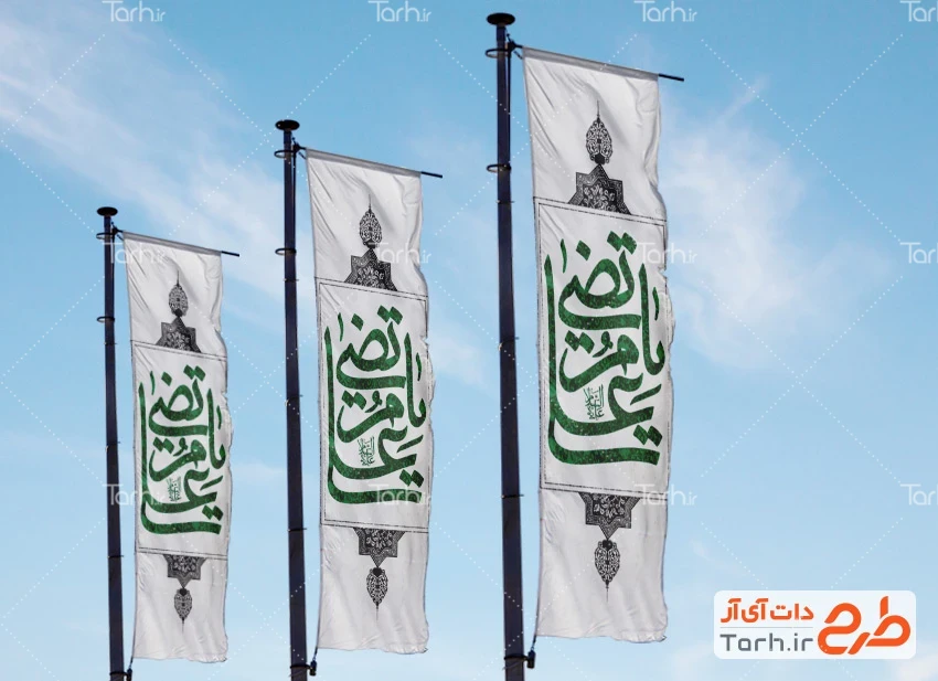 طرح پرچم میله ای شهادت حضرت علی با فرمت psd و قابل ویرایش در نرم افزار فتوشاپ به صورت لایه باز توسط تیم طراحان طرح دات آی آر طراحی شده است. در طرح استند و لمپوست شهادت امام علی از تصاویر و المان های با کیفیت و متناسب با استاندارد چاپ استفاده گردیده است. طرح لایه باز پرچم عمودی شهادت امام علی شامل تایپوگرافی یا مرتضی علی می باشد که المان های استفاده شده در طرح پرچم پل شهادت امام علی قابلیت ویرایش، جابه جایی و تغییر سایز را دارا بوده و شما می توانید متناسب با سلیقه خودتان طرح بنر شهری شهادت امام علی را ویرایش نمایید.