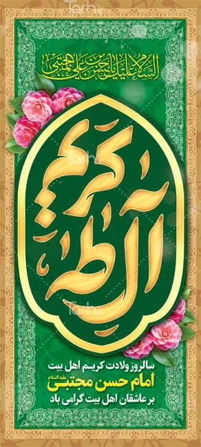 طرح خام بنر ایستاده ولادت امام حسن دارای تایپوگرافی کریم آل طه کد فایل 7941823