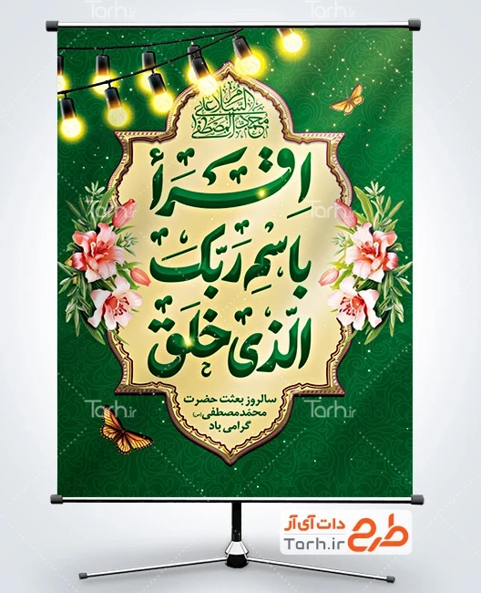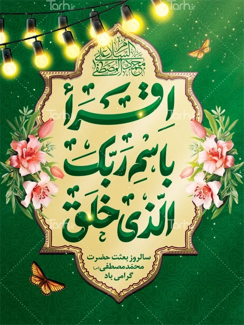 طرح خام پوستر تبریک عید مبعث با تایپوگرافی اقرا باسم ربک الذی خلق کد فایل 7960528