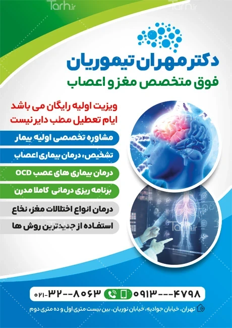 طرح تراکت لایه باز متخصص مغز و اعصاب با فرمت psd و قابل ویرایش در نرمافزار فتوشاپ بهصورت لایه باز توسط تیم طراحان طرح دات آی آر طراحی شده است. در نمونه تراکت دکتر مغز و اعصاب از تصاویر و المانهای باکیفیت و متناسب با استاندارد چاپ استفادهشده، همچنین نکات مهم در طرح تراکت دکتر مغز و اعصاب مانند رنگبندی، رعایت حاشیه، فاصلهها، فضای کافی برای درج متن، سایز و نوع فونت مناسب طراحی تراکت و ... رعایت گردیده است. طرح لایه باز تراکت متخصص مغز و اعصاب شامل متن تبلیغاتی متخصص مغز و اعصاب میباشد که المانهای استفادهشده در طرح تراکت متخصص مغز و اعصاب قابلیت ویرایش، جابهجایی و تغییر سایز را دارا بوده و شما میتوانید متناسب باسلیقه خودتان تراکت خام دکتر مغز و اعصاب را ویرایش نمایید، همچنین با تغییر تصاویر و متنها میتوانید طرح تراکت کلینیک مغز و اعصاب را به طرح تراکت کسب و کار مد نظر خود شخصی سازی نمایید.
