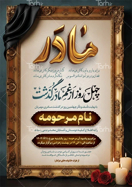 طرح اعلامیه ترحیم چهلمین روز درگذشت مادر با تایپوگرافی مادر کد فایل 7983412